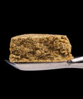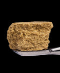 Dry Sift Hash (Static Tech) is produced by mechanically separating trichomes from cured trim or flower using fine micron screens, using static electricity. The collected resin is gently refined and pressed into a more cohesive, pliable form. Pressed dry sift is dense and buttery. Product is packaged in glass jars. Different cultivars yield varying grades, colors, and textures, with potencies commonly ranging from 60–70%+ depending on refinement and input material.